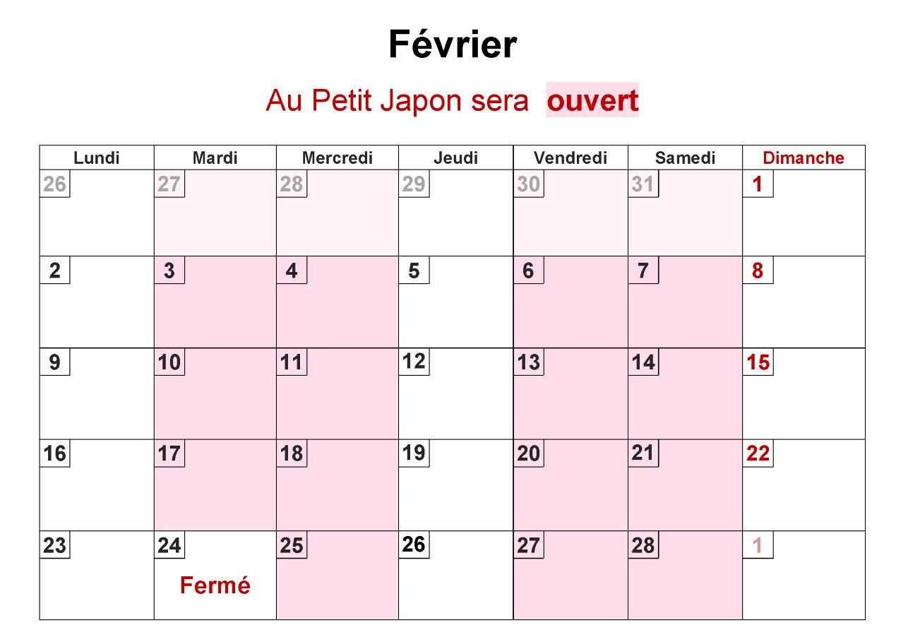 Voici le calendrier du mois.